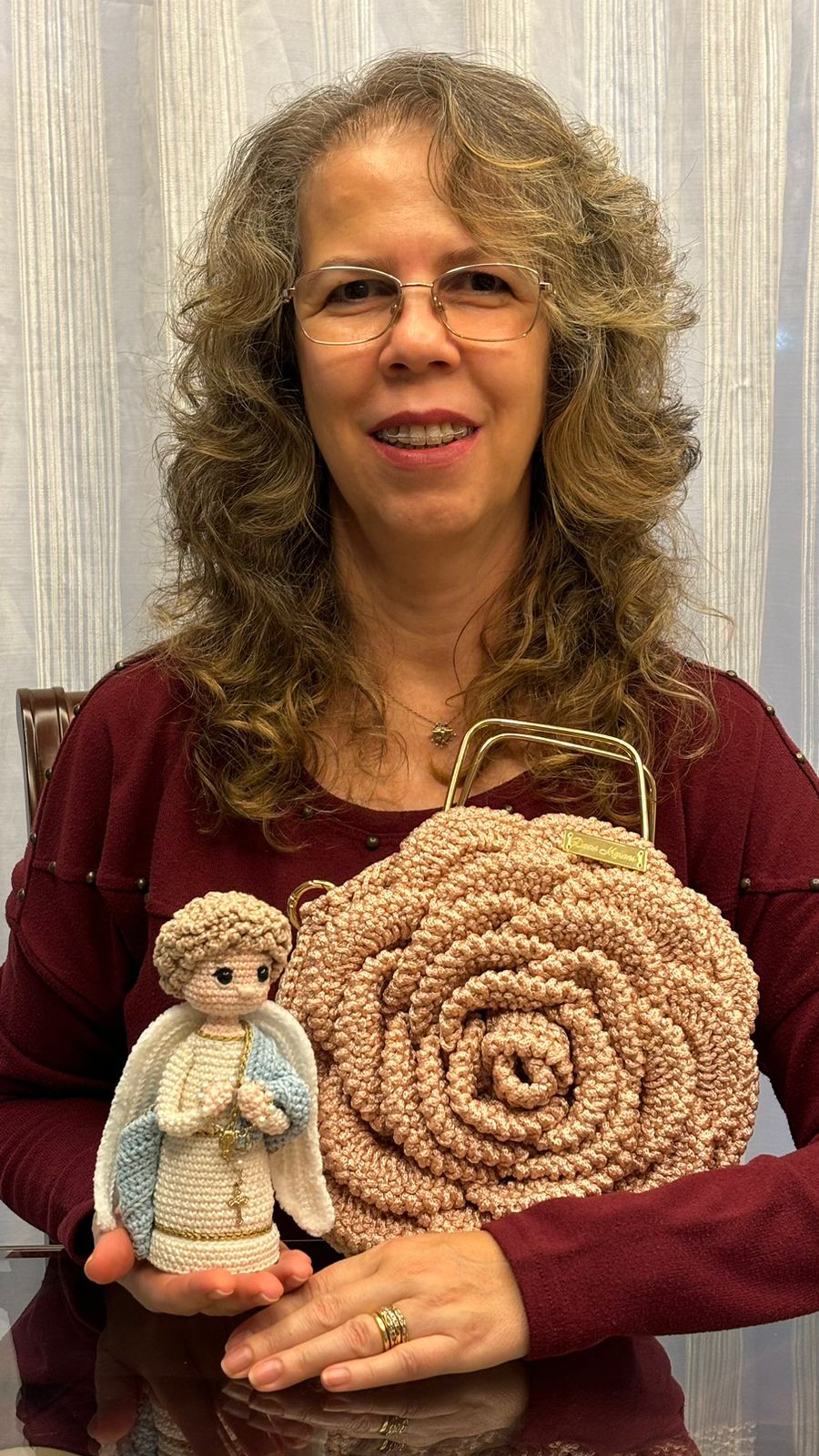 Durante a pandemia, em 2020, reencontrei o prazer de criar com as mãos. Voltei ao crochê e tricô e, aos poucos, me especializei em bolsas de crochê e amigurumis.